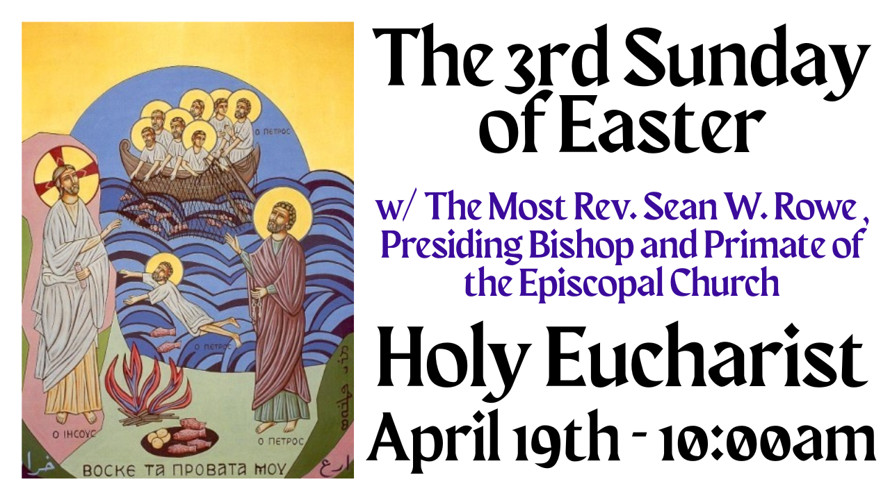 Come join us for our 3rd Sunday of Easter Service on 04/19/26 at 10:00am. We will be joined by the Most Rev. Sean Rowe, who is the Presding Bishop and Primate of the Episcopal Church. This service will be held at 519 N. Douty Street Hanford CA and will be available livestreamed, as well as later. Click/Tap on pic for Video Link.